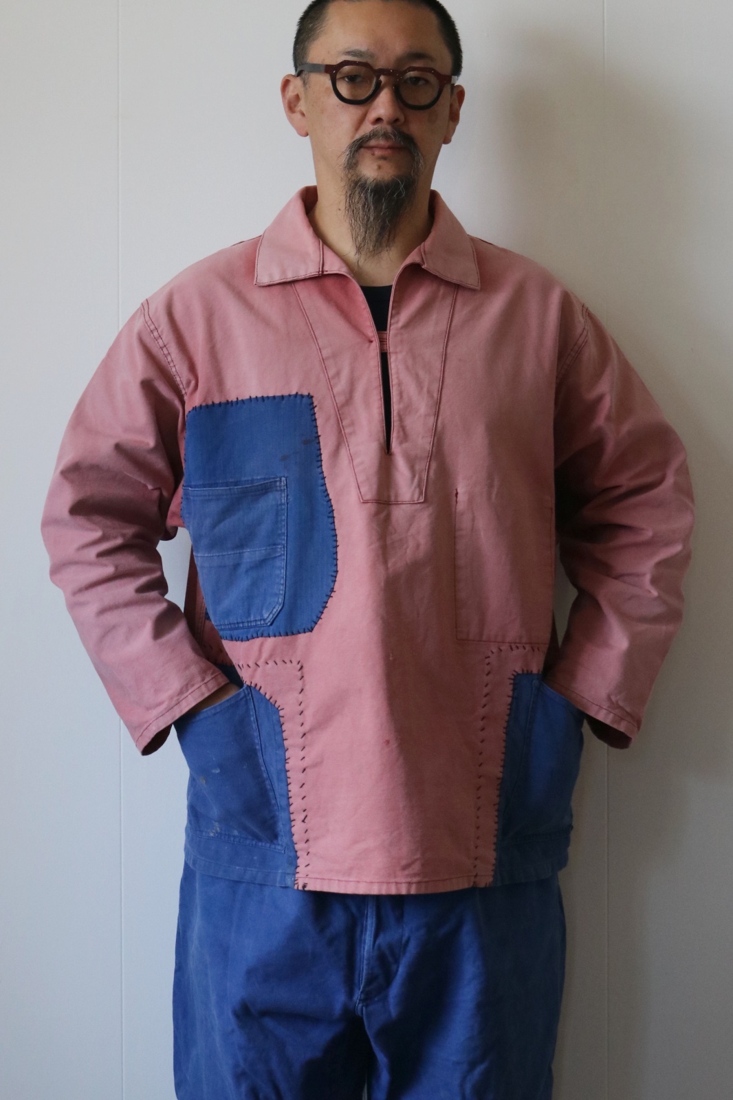 リメイク:フランスの漁師さんが着ていたピンクのワークシャツにドイツのワークジャケットに使われていた