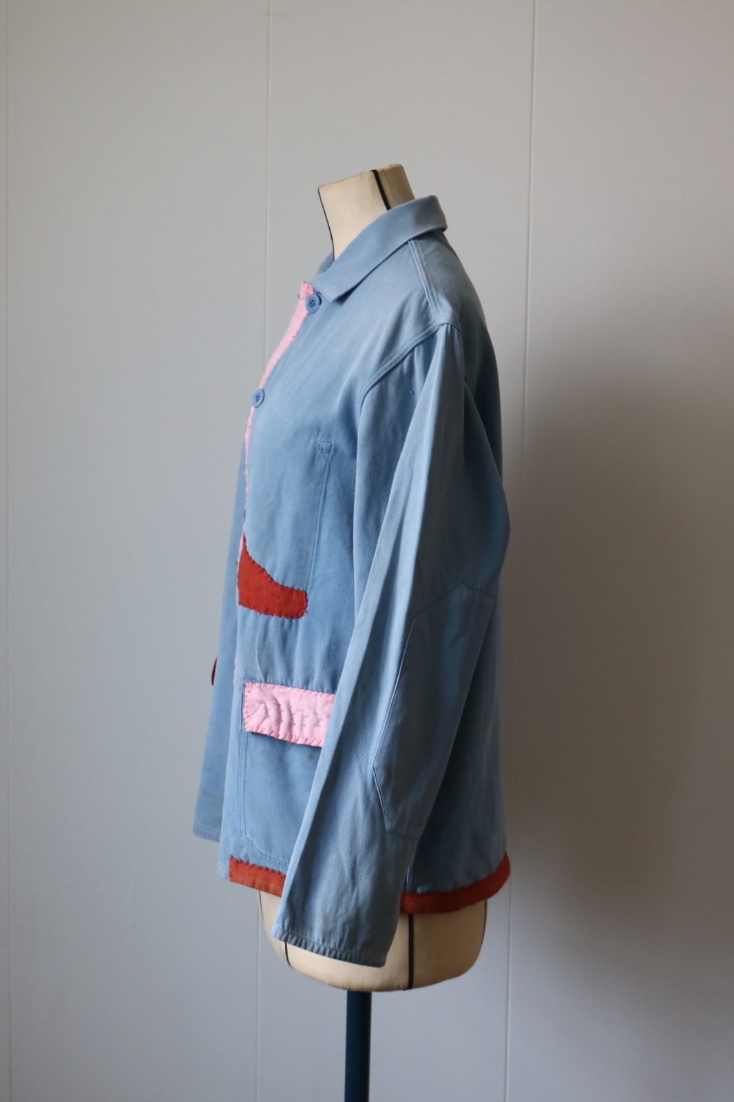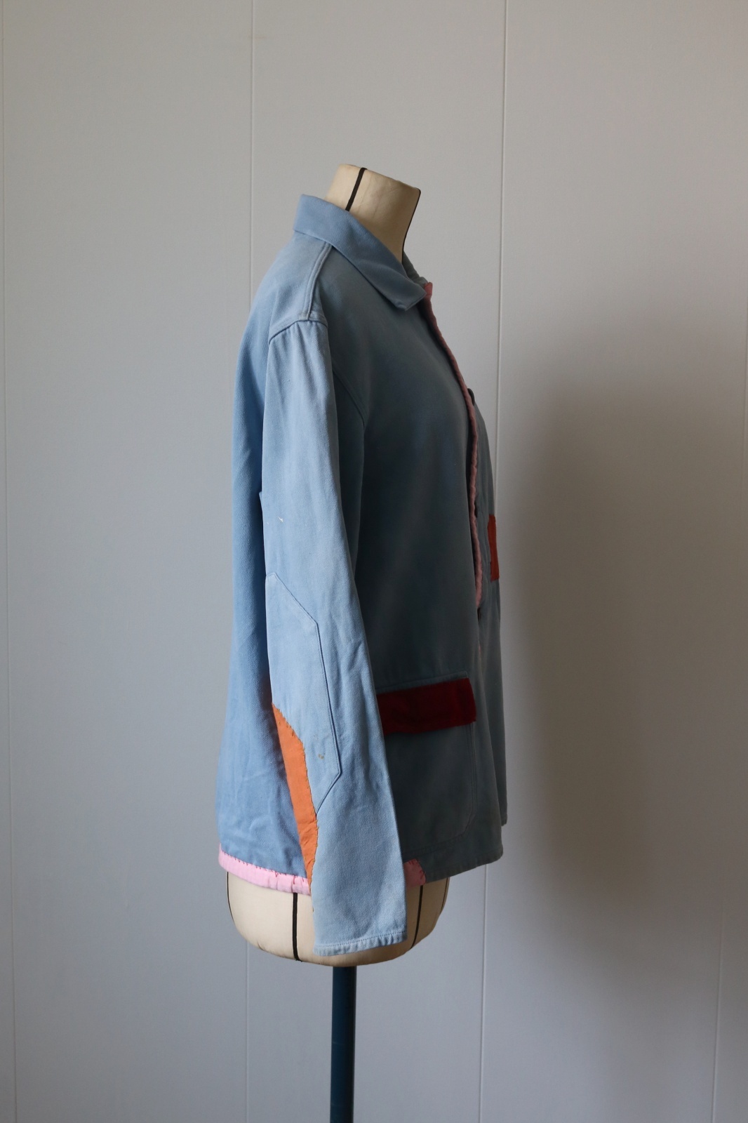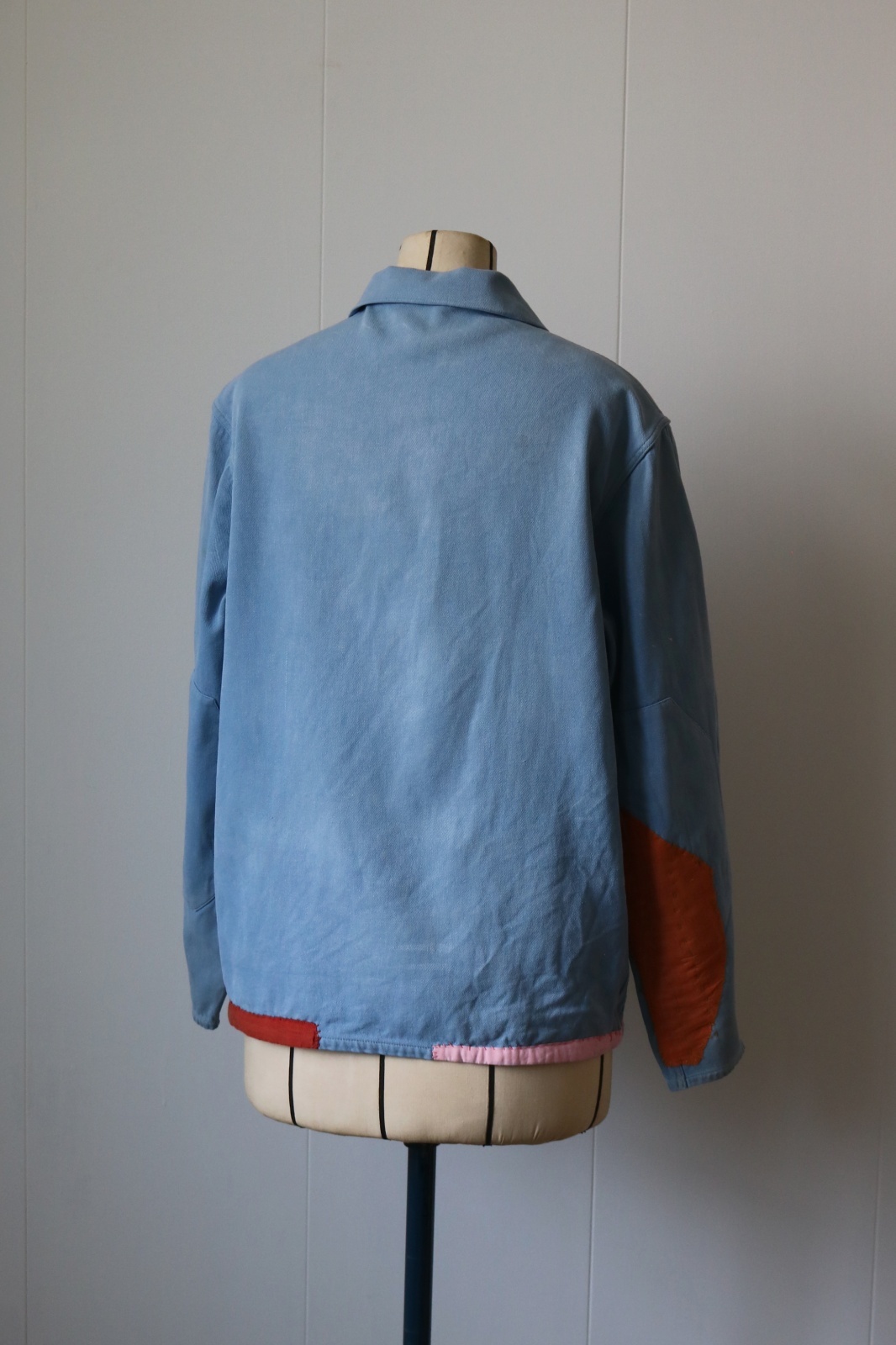 リメイク:東ヨーロッパのどこかの国のワークジャケットに日本の古布のカラフルな色合いの木綿を