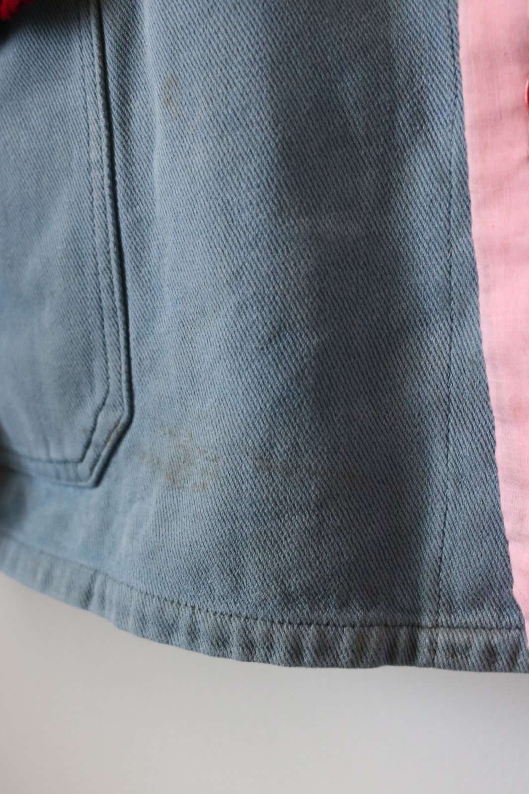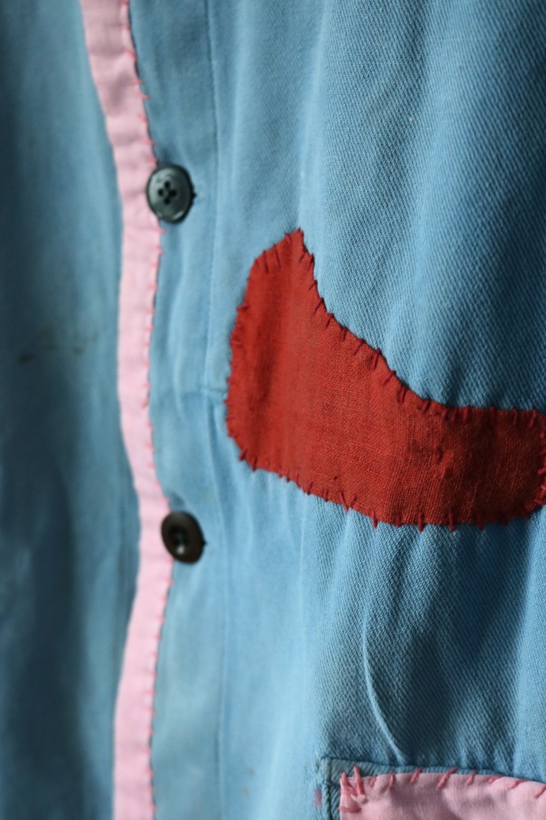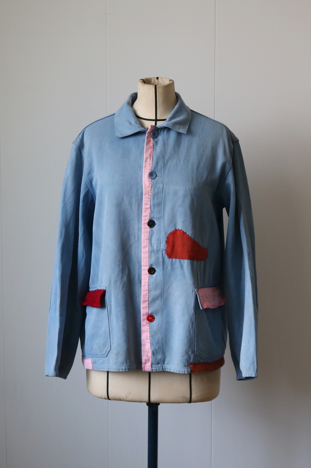 リメイク:東ヨーロッパのどこかの国のワークジャケットに日本の古布のカラフルな色合いの木綿を