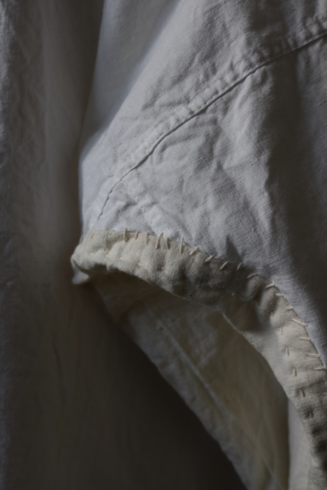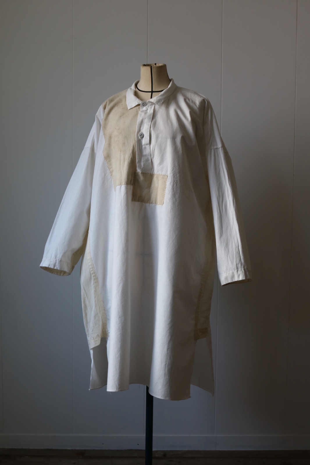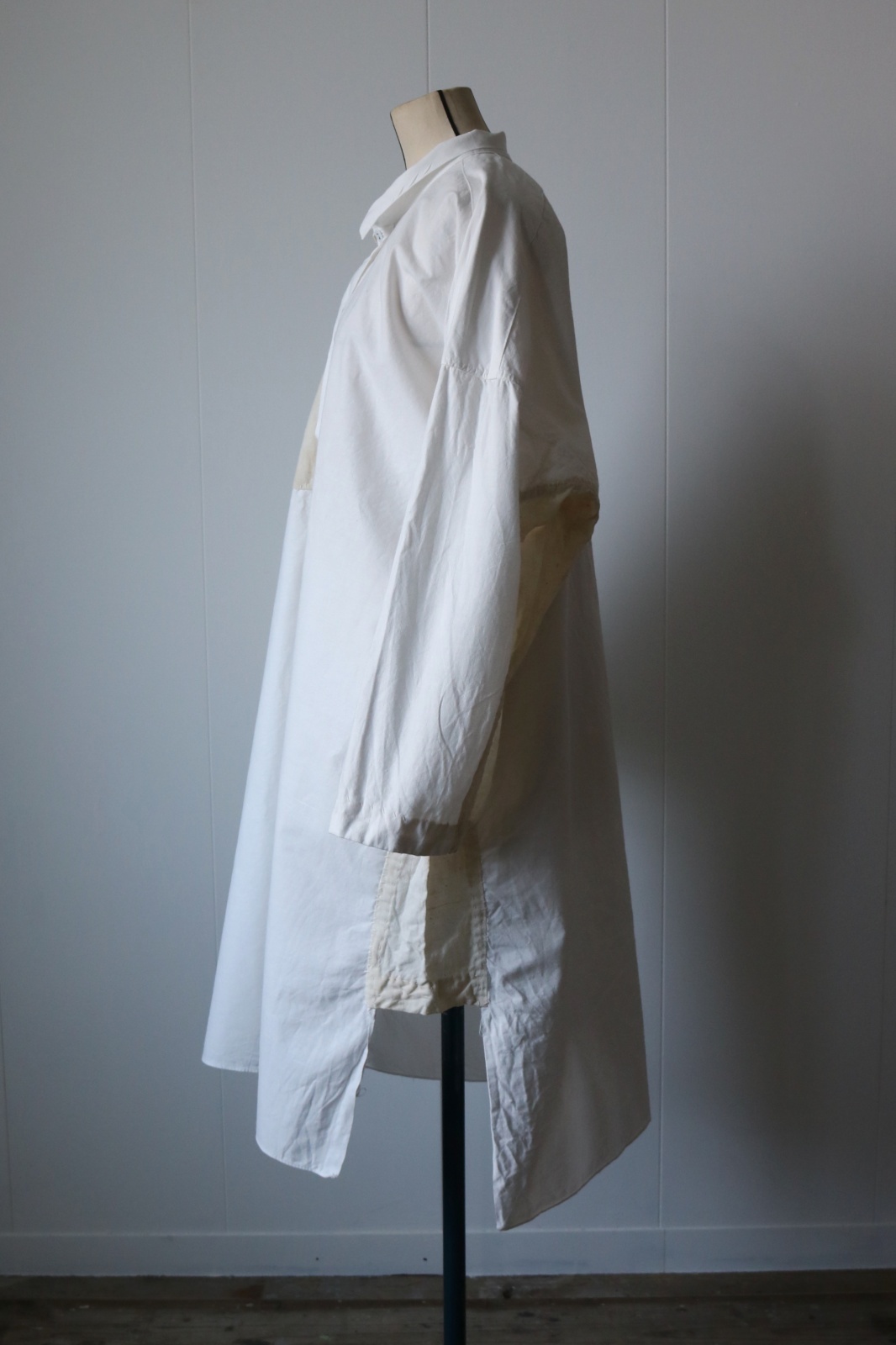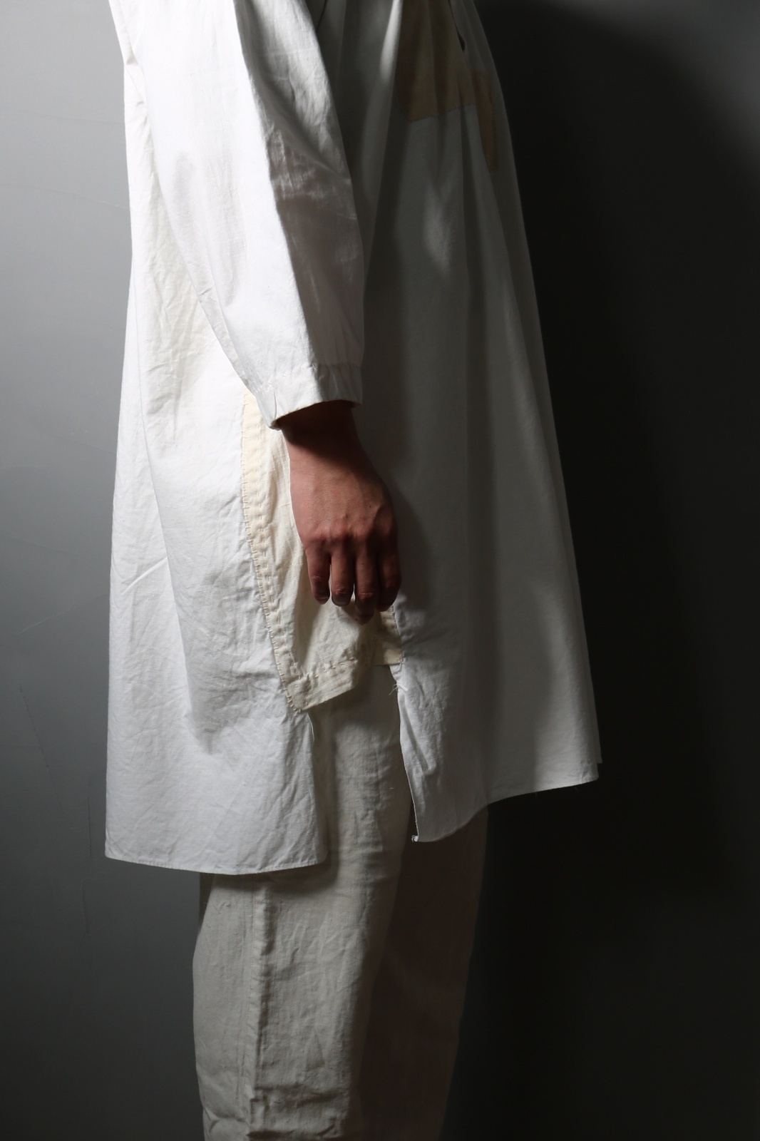 【MITSUGU SASAKI】ビンテージリメイク スウェーデン軍 コットン ホワイトワイドロングシャツ [top-465]